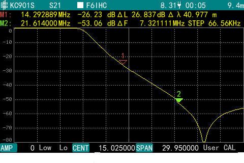 La perte d’insertion de cet ensemble est faible (0,2 dB), il coupe efficacement bien qu’il ne soit composé que de 2 pôles.