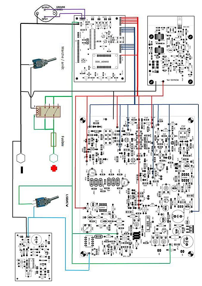 Les fils bleu foncé correspondent aux alimentations de la partie TX.